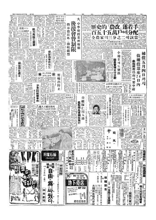 - 歷史的(력사적)『農改(농개)』遂着手(수저수) 百五十五萬戶(백오십오만호)에分配(분배)