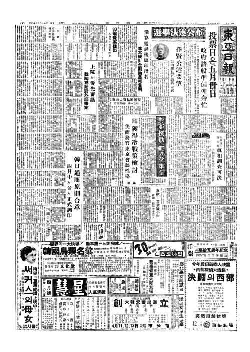 - 韓日通商原則合意(한일통상원즉합의) 四月中(사월중)서울서正式調印(정식조인)