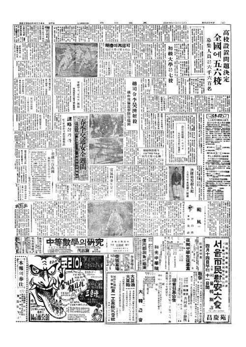 - 高校設置問題決定(고교설치문제결정) 全國(전국)에五六校(오륙교)