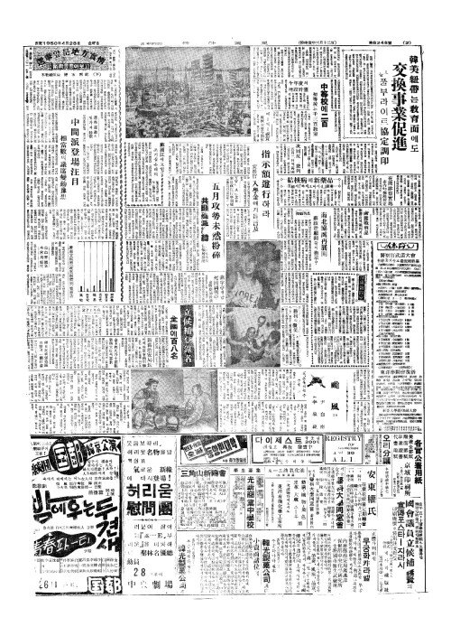 - 韓美紐帶(한미유대)는敎育面(교육면)에도 交換事業促進(교환사업촉진)