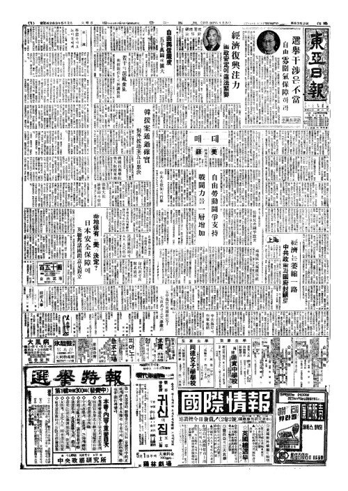 - 經濟(경제)는萎縮一路(위축일노) 中共政策(중공정책)과國府封鎻(국부봉쇄)로
