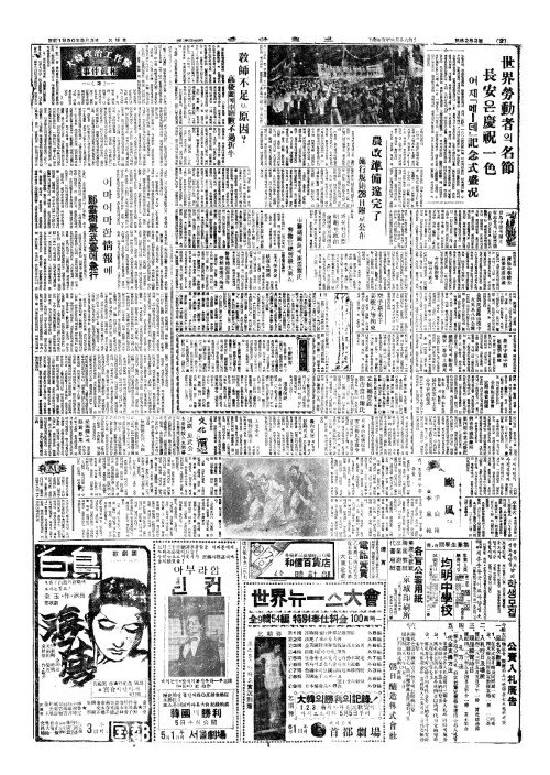 - 世界勞動者(세계노동자)의名節(명절) 長安(장안)은慶祝一色(경축일색)
