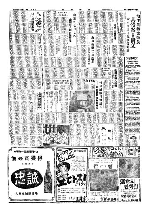 - 地主(지주)의轉業斡旋(전업알선) 具體案(구체안)을樹立(수립) 大小(대소)에따라規模等考慮(규모등고려)