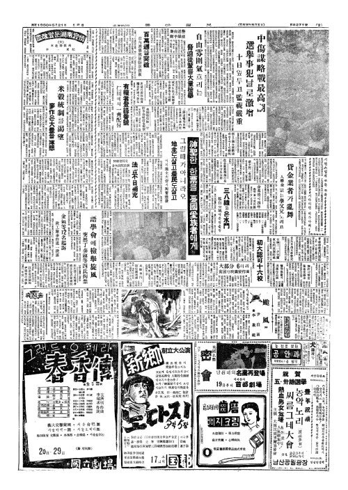 - 中傷謀略戰最高潮(중상모략전최고조) 選擧事犯(선거사범)날로激增(격증) 十日(십일)앞두고監視嚴重(감시엄중)