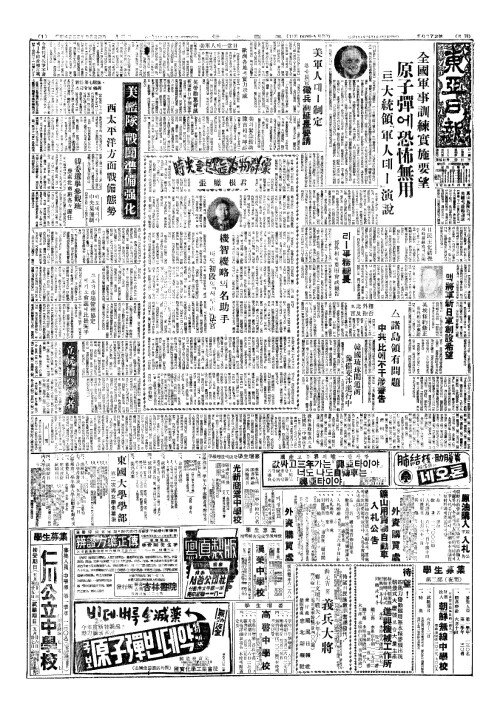 - 全國軍事訓練實施要望(전국군사훈련실시요망) 原子彈(원자탄)에恐怖無用(공포무용) 트大統領(대통영)『軍人(군인)데-』演說(연설)