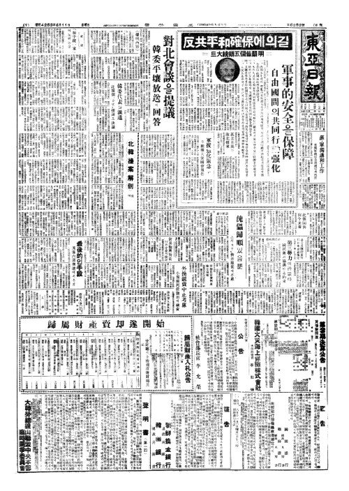 - 對北會談(대북회담)을提議(제의) 韓委平壤放送(한위평양방송)에回答(회답)
