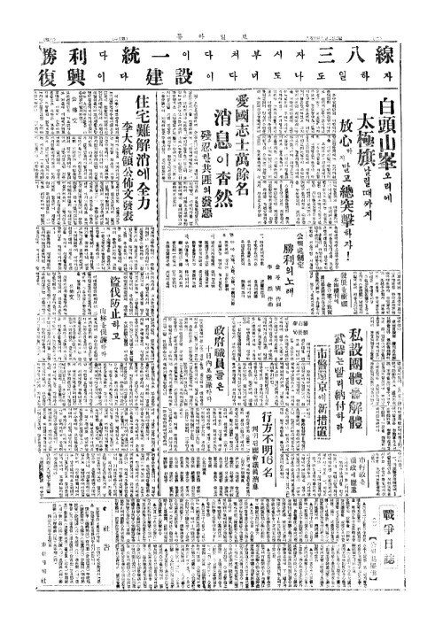 - 住宅難解消(주택난해소)에全力(전력) 李大統領公佈文發表(리대통영공포문발표)