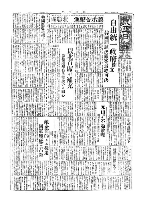 - 敵全面的(적전면적)으로後退(후퇴) 國軍庫底(국군고저)도占領(점영)