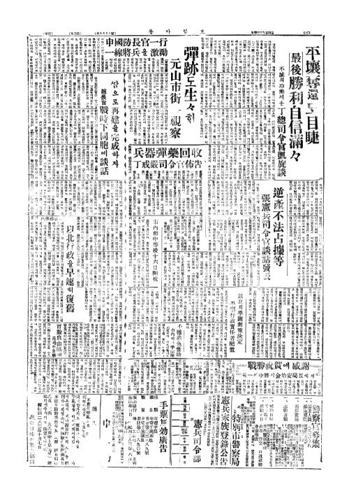 - 平壤奪還(평양탈환)도目睫(목첩) 最後勝利自信滿(최후승리자신만)々 不滅(부멸)의功勳(공훈)세운 丁總司令官凱旋談(정총사령관개선담)