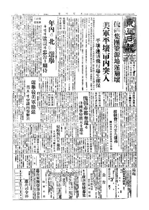 - 傀儡集團策源地遂崩壞(괴뢰집단책원지수붕괴) 美軍平壤市內突入(미군평양시내돌입)