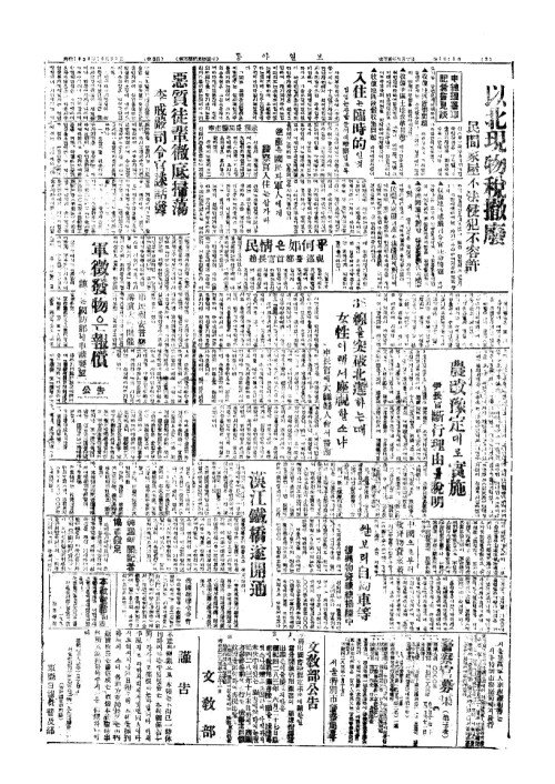 - 以北現物稅撤廢(이북현물세철폐) 民間家屋不法侵犯不容許(민간가옥부법침범부용허) 申總理署理(신총리서리) 記者會見談(기자회견담)