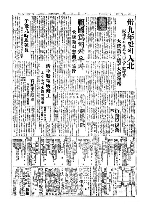 - 淸平發電所修工(청평발전소수공) 오늘부터水色(수색)에送電(송전)