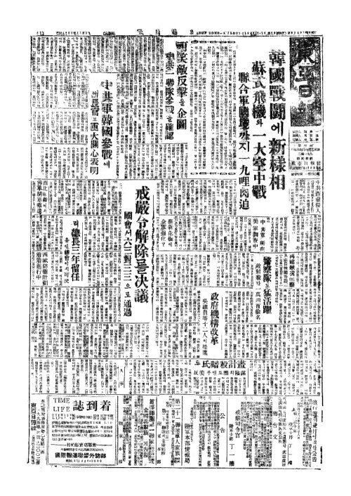 - 中共軍韓國參戰(중공군한국삼전)에 애長官(장관)도重大關心表明(중대관심표명)
