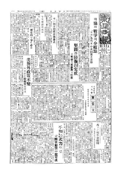- 북대동맹회의 平和(평화)는武力(무력)으로 국際軍創設一致可决(제군창설일치가결)