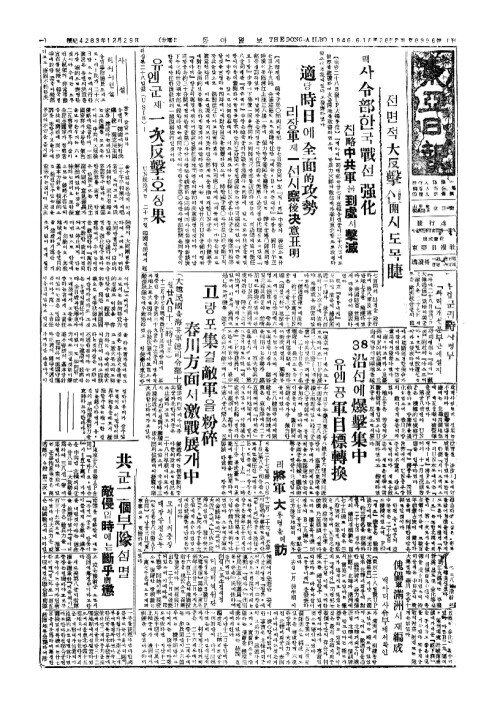 고랑포集(집)결 敵軍(적군)을粉碎(분쇄) 春川方面(춘천방면)서激戰展(격전전)개中(중)