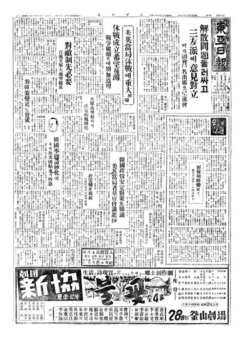 - 美英當局休戰(미영당국휴전)에重大示唆(중대시사)