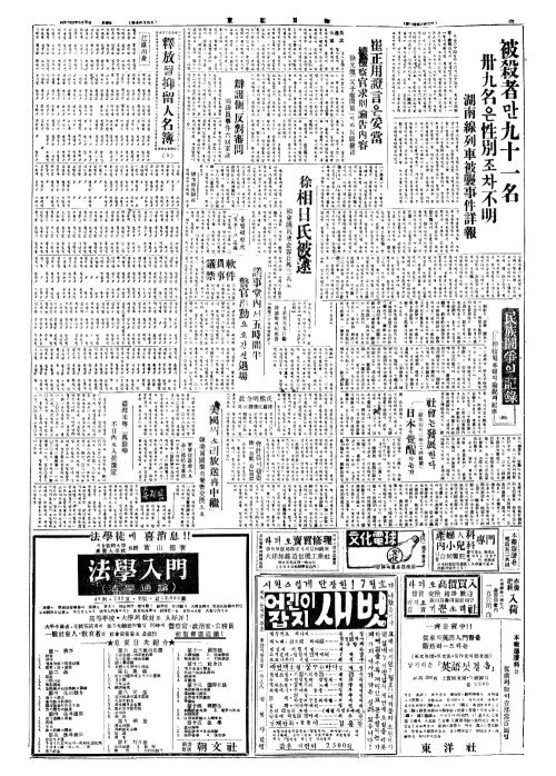 - 日系美兵五百餘(일계미병오백여) 韓國戰(한국전)에서死傷(사상)