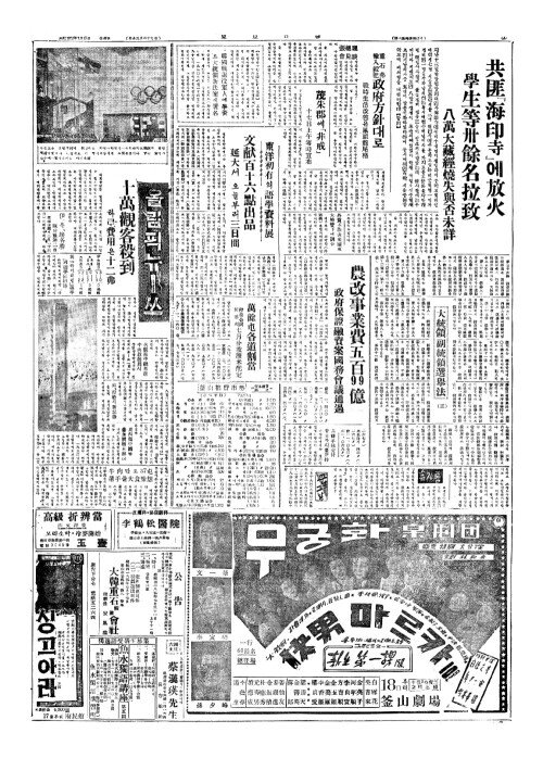 - 共匪(공비)『海印寺(해인사)』에放火(방화) 學生等卅餘名拉致(학생등삽여명랍치)