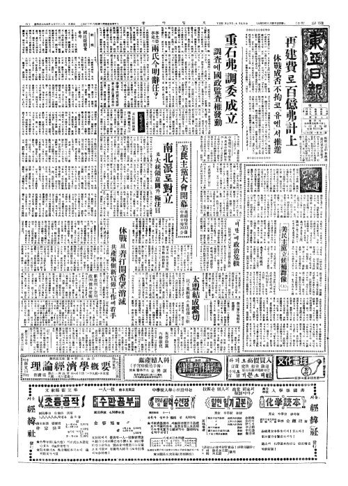 - 再建費(재건비)로百億弗計上(백억불계상) 休戰成否不拘(휴전성부부구)코『유엔』서推進(추진)