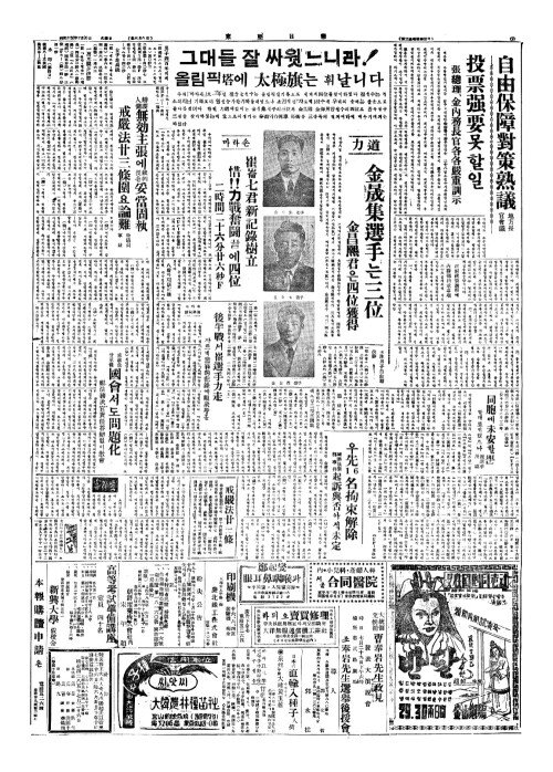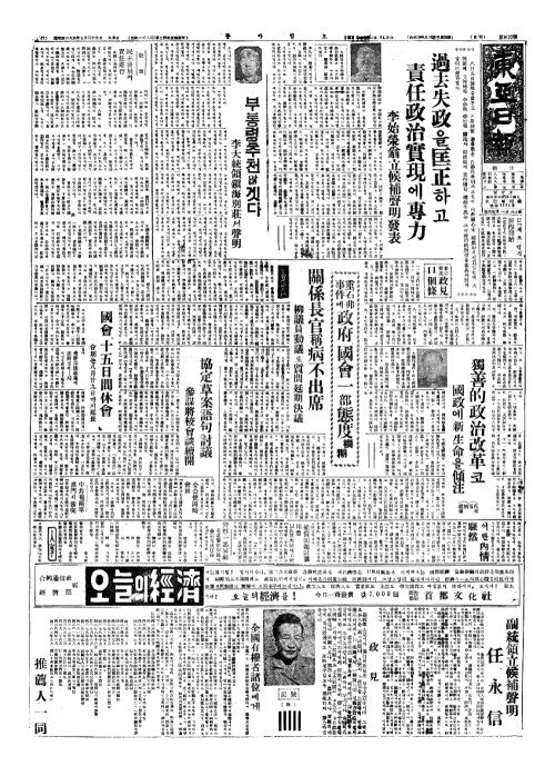 - 重石弗事件(중석불사건)에 政府國會一部態度模糊(정부국회일부태탁모호) 關係長官稱病不出席(관계장관칭병부출석)