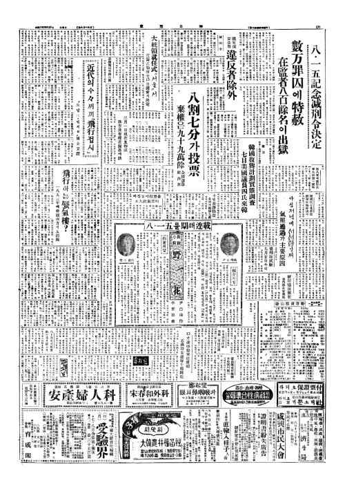 - 八(팔)·一五記念减刑令決定(일오기념감형영결정) 數万罪囚(삭만죄수)에特赦(특사)