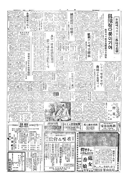 - 蒼波(창파)에시끼우는孤島(고도)의悲劇(비극) 飢餓(기아)참다못이기여
