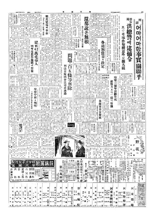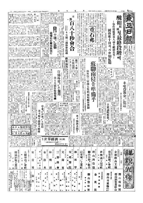 - 日內閣改編斷行(일내각개편단행) 自由黨工作活(자유당공작활)발