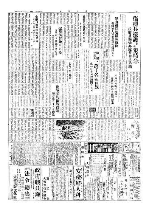 - 傷痍兵援護根本策時急(상이병원호근본책시급) 政府(정부)선關係部處會合(관계부처회합)코熟議(숙의)