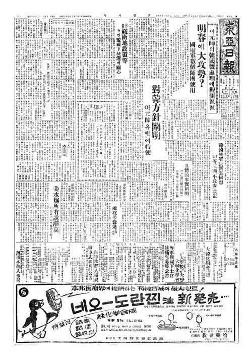 - 對韓方針闡明(대한방침천명) 아元帥(원수)『유엔』에特使(특사)