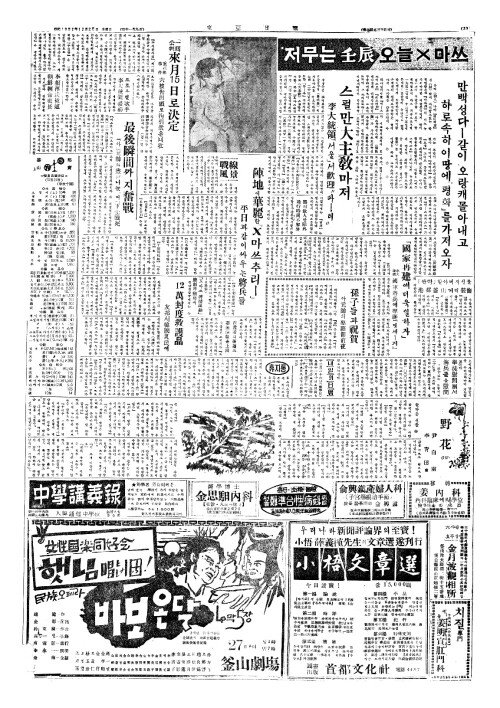 - 最後瞬間(최후순간)까지奮戰(분전)『아』元帥(원수)와晝昼(주주)나눈『머』下士戰死(하사전사)