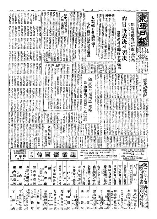 - 國府軍(국부군)의『海南島(해남도)』攻略(공략) 韓(한)、佛印戰有利策(불인전유리책)으로 아新政府愼重考慮(신정부신중고려)
