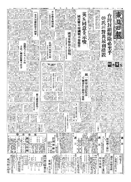 - 英(영)도同意(동의)를示唆(시사) 國府軍(국부군)의韓國戰不參條件(한국전부삼조건)