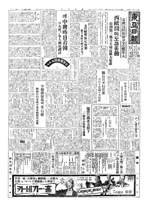 - 爆彈(폭탄)20萬(만)폰트投下(투하) B29機隊全戰線(기대전전선)을猛爆(맹폭)