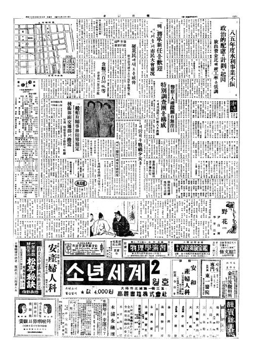 - 食糧三百(식량삼백)50叺等(입등) 社會部(사회부)서緊急分配(긴급분배)