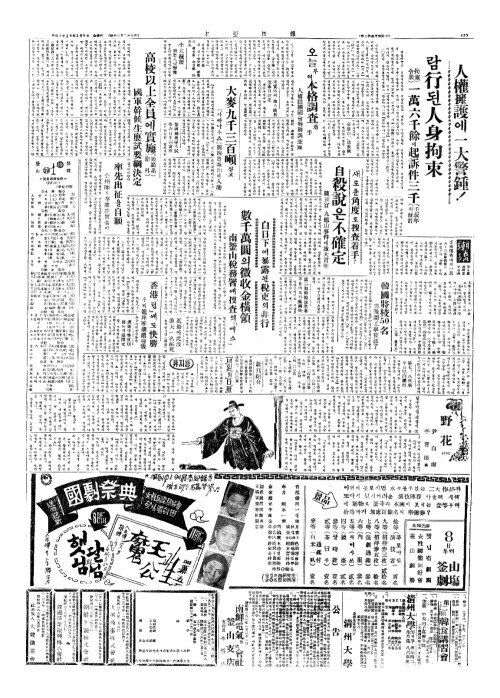 - 人權擁護(인권옹호)에一大警鍾(일대경종)!