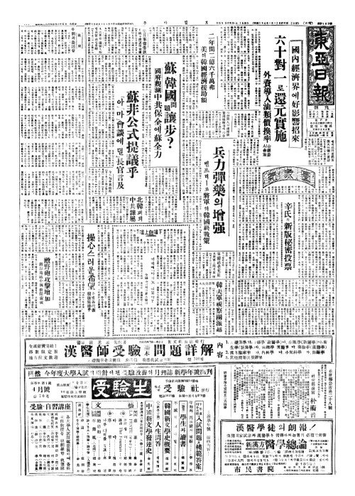- 二年間二億六千萬弗(이년간이억륙천만불) 美(미)의韓國經濟援助額(한국경제원조액)