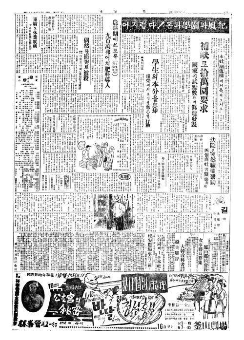 - 本報購讀申請(본보구독신청)은 電話五二六四番(전화오이륙사번)
