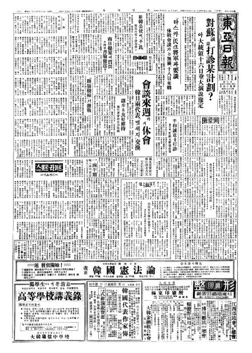 - 會談來週(회담내주)까지休會(휴회) 韓日兩代表(한일양대표)『멧세지』交換(교환)