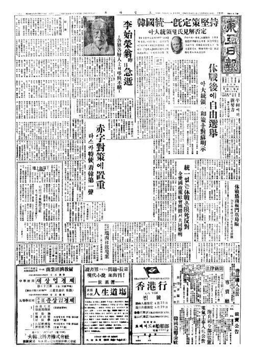 - 統一(통일)없는休戰(휴전)은限死反對(한사반대)