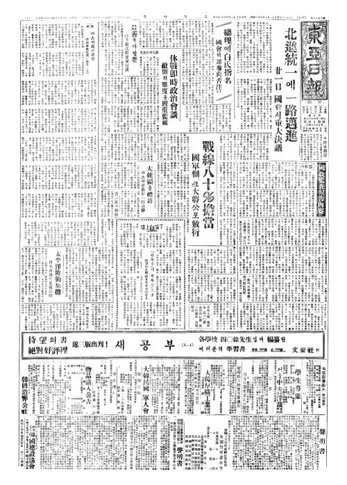- 休戰卽時政治會談(휴전즉시정치회담) 敵側(적측)의態度(태탁)를嚴重監視(엄중감시) 덜長官會見談(장관회견담)
