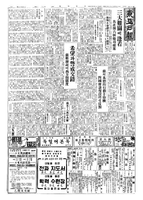 - [社說(사설)] 쏘련側(측)의依然(의연)한遲延戰術(지연전술)