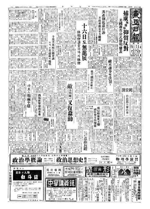 - 共產側底意打診(공산측저의타진) 美政府銳意努力繼續(미정부예의노역계속)