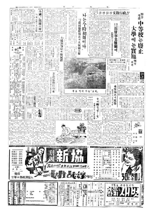 - 聯合考查中等校(련합고사중등교)는廢止(폐지) 大學(대학)에는實施明年(실시명연)부터
