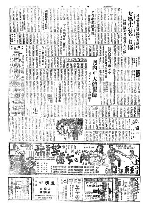 - 八日(팔일)서울空襲被害判明(공습피해판명)