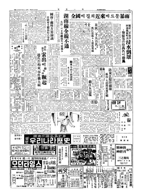 - 서울 災民二千五百名發生(재민이천오백명발생) 漢江氾濫(한강범람)으로栗島危險(율도위험)