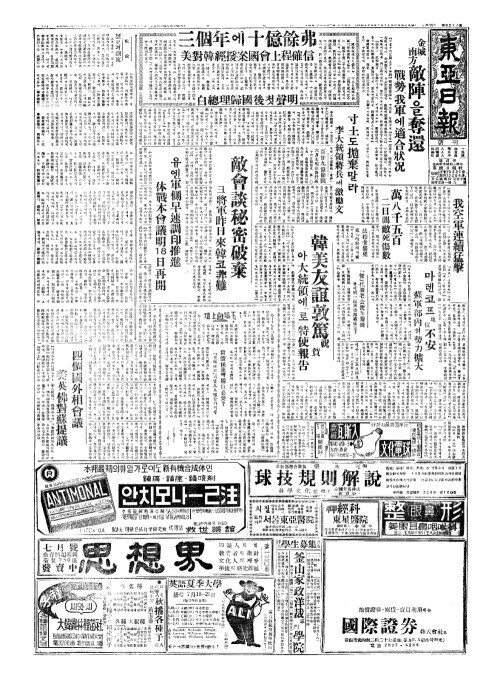 - 유엔軍側早速調印推進(군측조속조인추진) 休戰本會議明(휴전본회의명)18日再開(일재개)