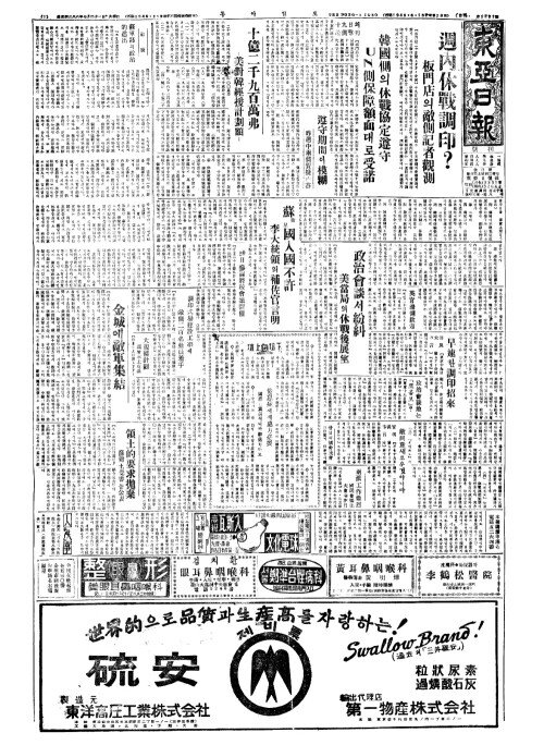 - 政治會談(정치회담)서紛糾(분규) 美當局(미당국)의休戰後展望(휴전후전망)