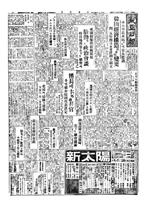 - 來週初豫備折衝開始(내주초예비절충개시) 胎動(태동)하는政治會談(정치회담)