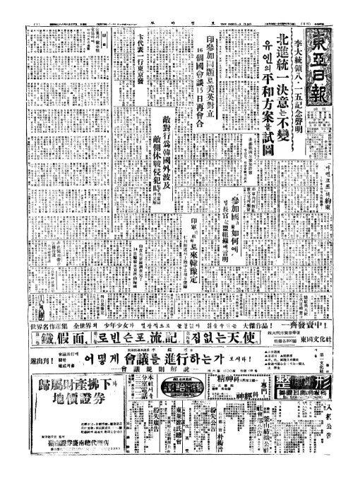 - 印參加問題(인삼가문제)로美英對立(미영대립) 16個國會談(개국회담)15日再會合(일재회합)