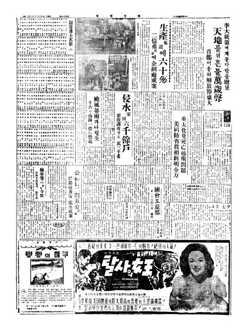 - 侵水家屋六千餘戶(침수가옥륙천여호)